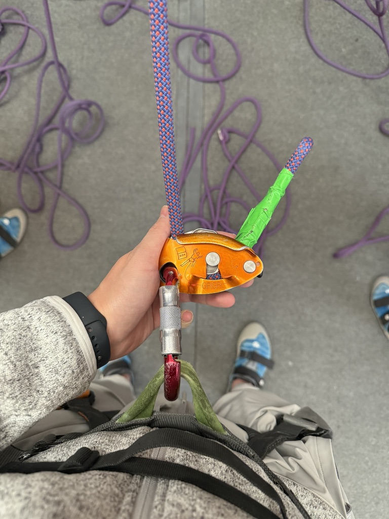 5. Confirmed that both the climber and the belayer are attached to the same rope.